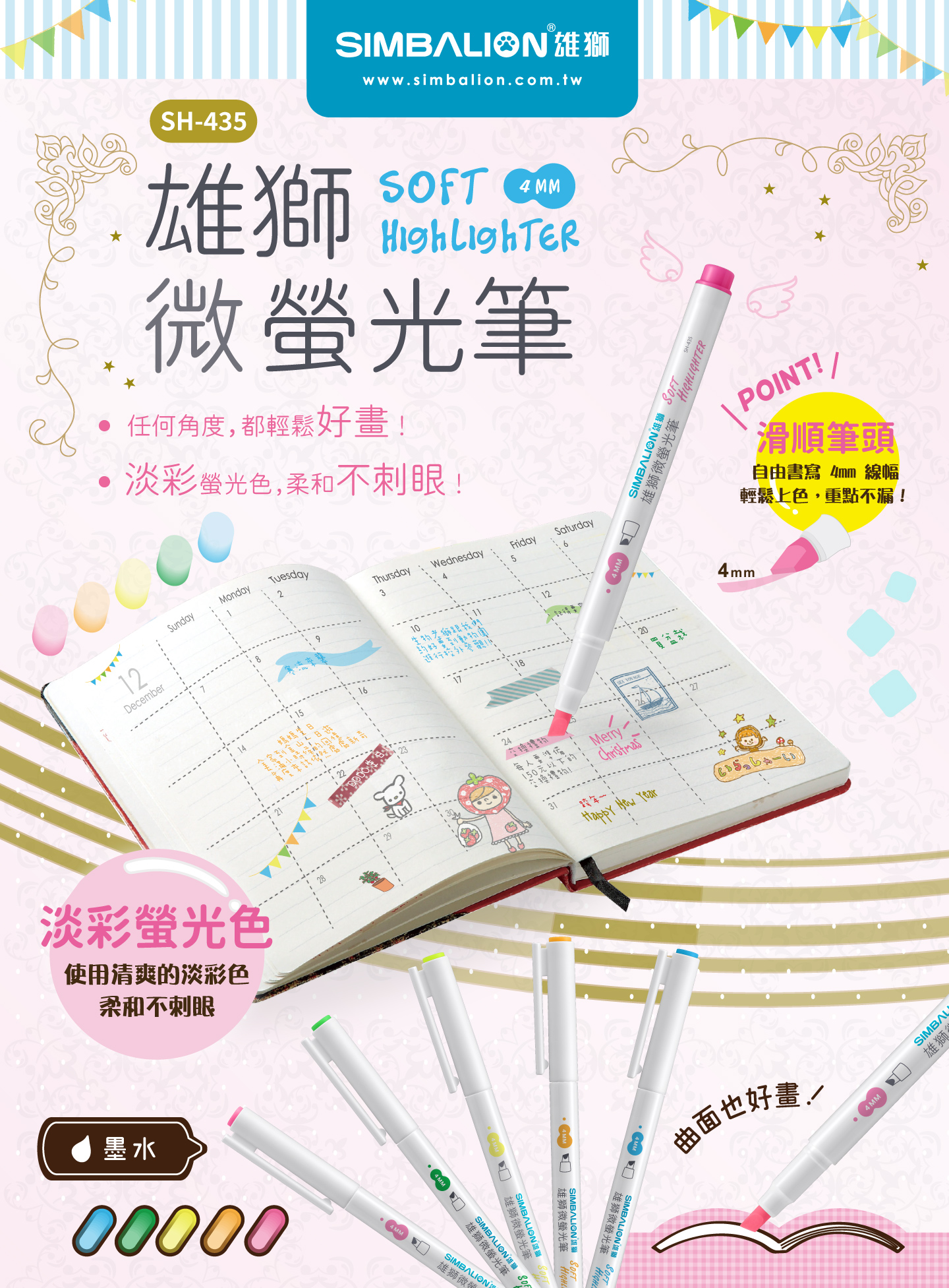 雄獅微螢光筆,適合一般紙張使用,包括:傳真紙、影印紙、課本、參考書……等等都適用,墨水不暈開,顏色不變髒,也很適合拿來繪製日系風手帳,用淡淡的柔和色彩,為你的生活手帳妝點出清新的迷人風格!!